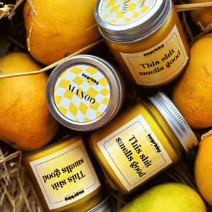 Bright, juicy, and unapologetically tropical—this candle is all about good vibes and even better scents. Cleanly poured soy wax sits in a vibrant yellow jar, perfectly representing the lush, golden hues of ripe mangoes. Aesthetic packaging and quirky labeling make it a fun yet stylish addition to any space.